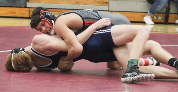 A couple of really good marquee matches included the 126-pound bout between freshman Tanner Arjes and Class 2A No. 7-ranked Jack Showalter. Showalter never led after an initial takedown by Arjes in the first period en route to a hard-fought 8-4 decision for the freshman, including a late third period takedown.