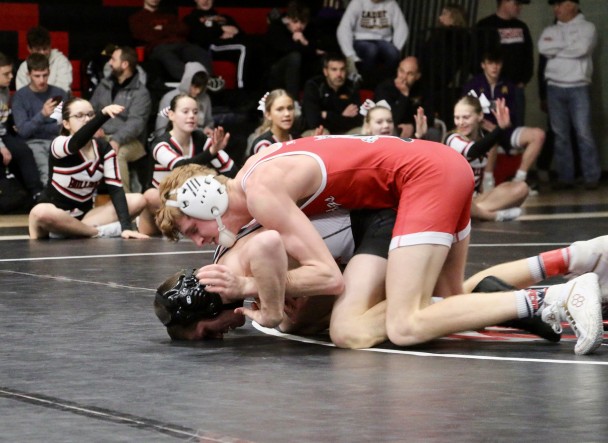On Tuesday Jan 17th The Bulldog wrestlers traveled to Garner for a double dual with the Garner-Hayfield/Ventura Cardinals and the Forest City Indians.. The Bulldogs would face off with the home team first and came away with wins in 8 of the 14 matches with Taylor Mahler, Hector Bunston, Carter Heilskov, and Brody Strother all winning by fall. Karter Janssen, Jayson Stevens, Jaymes Stevens, and Charlie Showalter all took forfeits. The contest ended with the Bulldogs beating the Cardinals 48-30. The next dual pitted the Bulldogs against the Indians and The Bulldogs dominated, winning 11 of the 14 match-ups. Taylor Mahler, Colin Bird, Karter Janssen, Cael Burmester, Maddon Evans, Carter Heilskov, Jayson Stevens, Jaymes Stevens, Brody Strother, and Chase Johnson would all get pins for the Bulldogs and Charlie Showalter would earn an 11-5 decision. The two dual wins reset the Bulldog’s dual record back to 8 and 8.