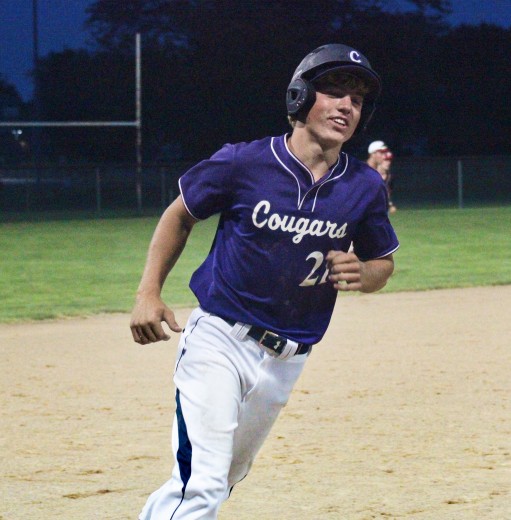 The Cougars answered with a single by Bradly Roder, went from first to third on a single by Darren Veld and then scored on a sacrifice bunt attempt by Chase Harms after he was initially looked back to the bag.