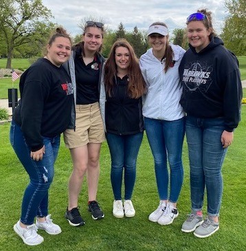 The West Fork girls’ golf team, guided by WF girls’ golf coach Mary Schulz, gathers up for a group photo before competing at the Class 1A Regional Tournament, held this past Monday at the Rice Lake Golf & Country Club in Lake Mills. Pictured from left to right are Emma McKee, Allison Pitzenberger, Hailey McCoy-Munger, Kalli Trewin and Rose Rother.