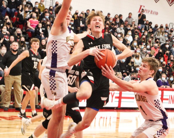 Lake Mills’ starters didn’t have anyone under 6-foot-2. West Fork’s tallest starter, Joe Ingham at 6-5, led the Warhawks with 12 points. Cail Weaver, who had the first five points of the game for West Fork, finished with 10.