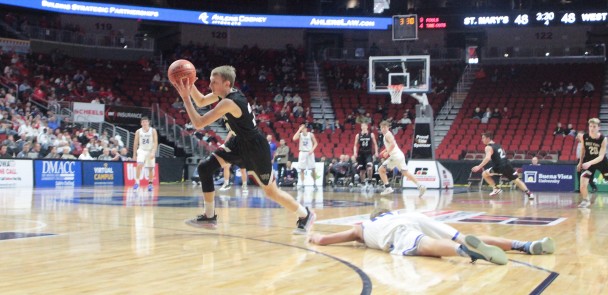 However, in the spot where they were trying to clean up, St. Mary’s Spencer Schorg slipped and his defender Cail Weaver stripped him of the ball and went in uncontested for a lay-up for a 50-48 lead with 3:29 remaining.