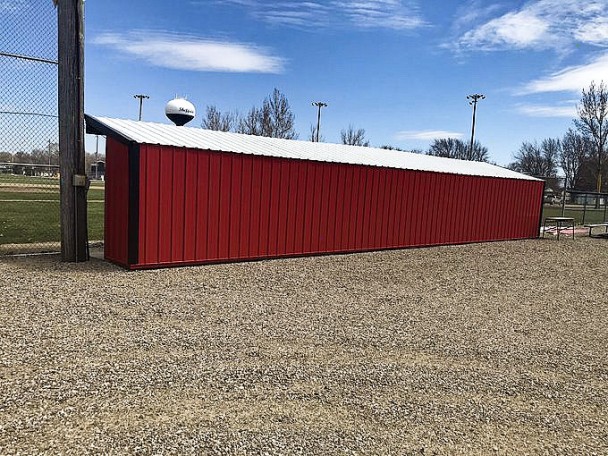 The new tin exterior of the West Fork dugout is shown from the front. Work was recently completed to upgrade it, (Submitted photo)