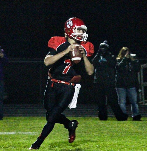 Cole Miller is shown dropping back to pass during the Bulldogs' 2014 playoff run his senior season. Miller was approved by the Hampton-Dumont school board as the new head coach on Monday, March 25, taking over in the Fall of 2021. (File photo)