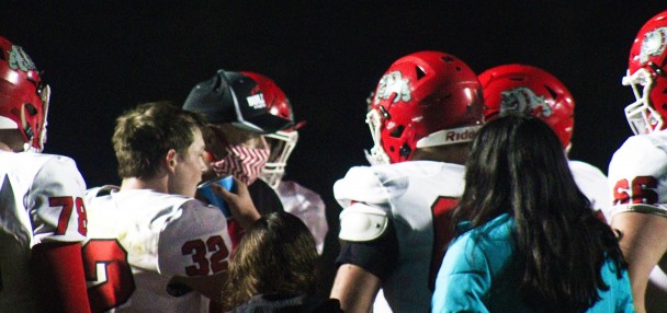 Andy Bruemmer, baseball cap and mask, is shown coaching on the sideline of the Bulldogs' win over Roland-Story in 2020. Bruemmer resigned as head coach recently. (File photo)