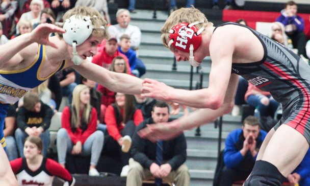 106– Rigo Bobadilla (CGD) won by forfeit; 113– Jack Showalter (H-D) dec. Tyler Stein 5-3, SV-1; 120– Jakyb Kapp (H-D) dec.Cale Kirstein 9-7; 126– Tomas Cavazos (H-d) pinned Ethan Traub 4:00; 132– Jaycob Martzahn (H-D) pinned Ben Oehlert 2:20; 138– Carl Barkema (H-D) won by forfeit; 145– Reed Abbas (CGD) dec. David Cornejo 10-5; 152– Garrett Seaba (CGD) pinned Tate Schmitt 2:40; 160– Bryce Allen (CGD) pinned Carter Hobson 0:29; 170– Braden Hansen (H-D) dec. Cael Ahrens 12-6; 182– Camden Hanson (CGD) pinned Aleks Salinas 1:12; 195– Logan Walker (H-D) pinned Rafael Jimenez 4:37; 220– Kain Nelson (CGD) pinned Elias Cortez 1:31; 285– Daniel Chavez (CGD) pinned Alex Koch 3:07.