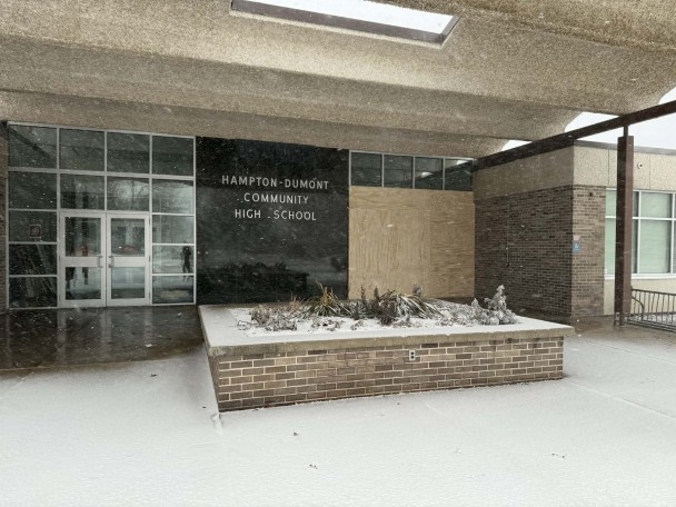 Kirk Gunderson, 64, of Hampton allegedly drove through the high school's front entrance around 9 p.m., according to the Hampton Police Department. The call came in shortly after 9 p.m.