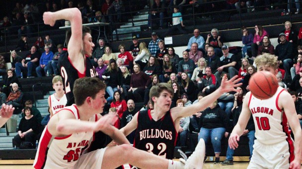 ALGONA – The visiting Bulldogs in this Class 3A Sub-state 2 boys’ basketball game was rolling right along with a 29-25 third quarter lead over Algona when senior forward Drew Uhlenhopp went down with an ankle injury.