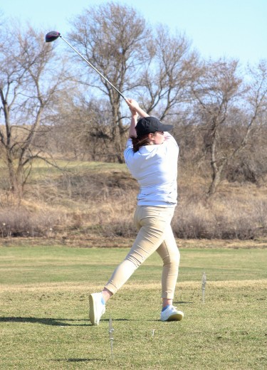 West Fork's Hailey McCoy-Munger tees off from hole No. 1 at Ridge Stone Golf Course in Sheffield on Monday, April 5. (Kristi Nixon/Hampton Chronicle)